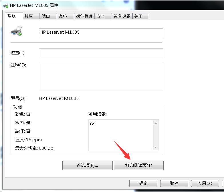 2.212) 回到常规标签页。点击打印测试页 看看打印机是否正常打印