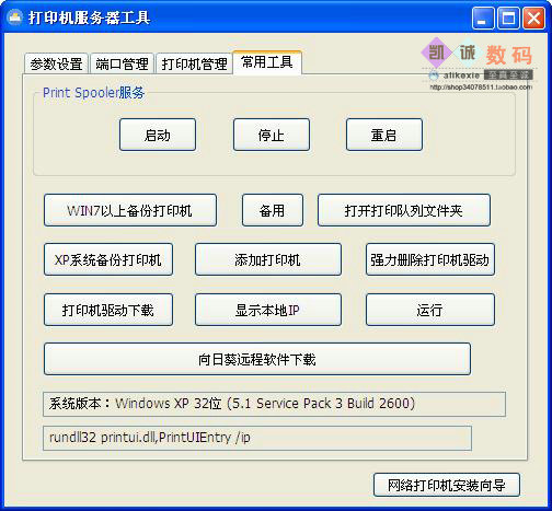 3、此软件主要功能:管理打印服务器、电脑上IP端口、打印机、以及一些常用工具。