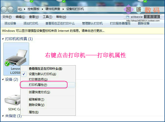 点击“开始”或者在控制面板里找到“设备和打印机”。开始操作: